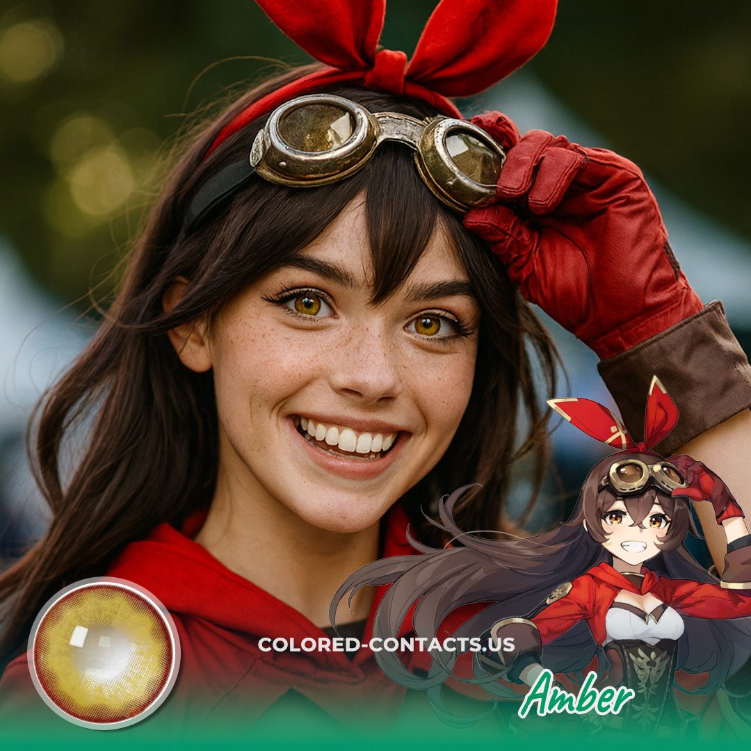Amber represents this incredible fusion of pyro power and adventurous spirit, and these golden cosplay contacts capture that exact energetic presence. It’s giving Genshin Impact energy with elemental dominance while channeling that outrider explorer spirit.