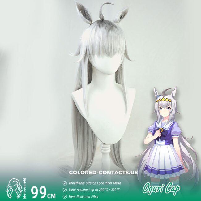 Capture the grace and determination of Uma Musume’s legendary racer with this stunning Oguri Cap cosplay wig featuring her signature silver-white styling and distinctive horse ear details.