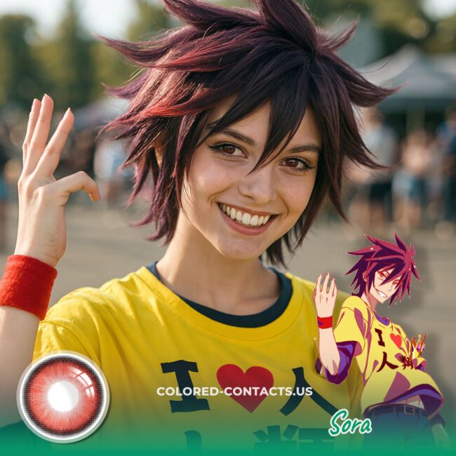 These Sora red contact lenses aren’t just about cosplay accuracy – they’re about channeling that whole “gaming mastermind” energy. Whether you’re attending conventions, creating content, or embodying strategic genius spirit, these lenses are absolutely essential.