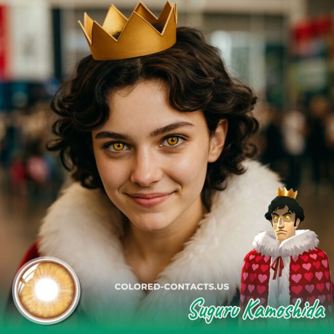 These Kamoshida contact lenses give us the most striking golden shade that perfectly captures his authoritative and imposing essence. It’s a regal combination that whispers absolute power with commanding presence and palace ruler authority.