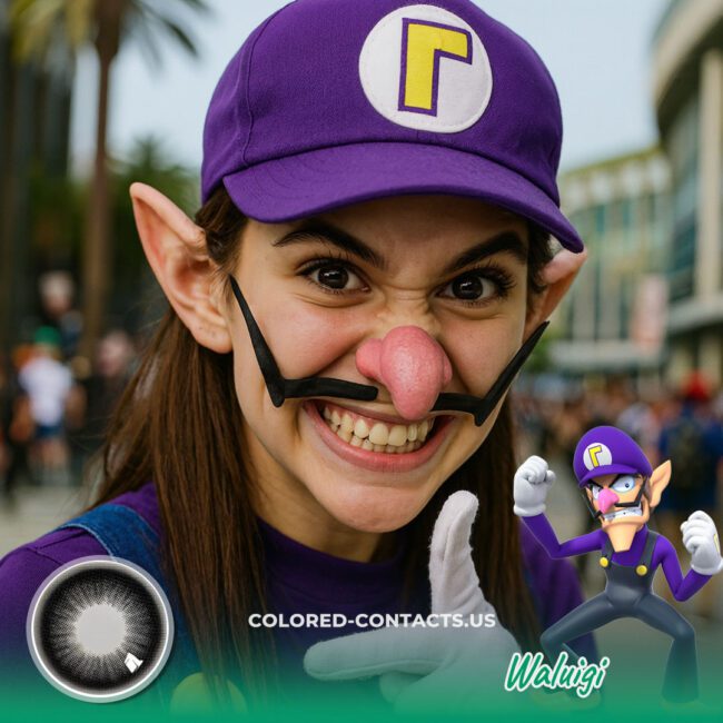 Waluigi represents the fusion of theatrical villainy and chaotic entertainment, and these black colored contacts capture that whole “WAH” energy. It’s about scheming with dramatic authority while maintaining that mischievous nature and theatrical dedication.